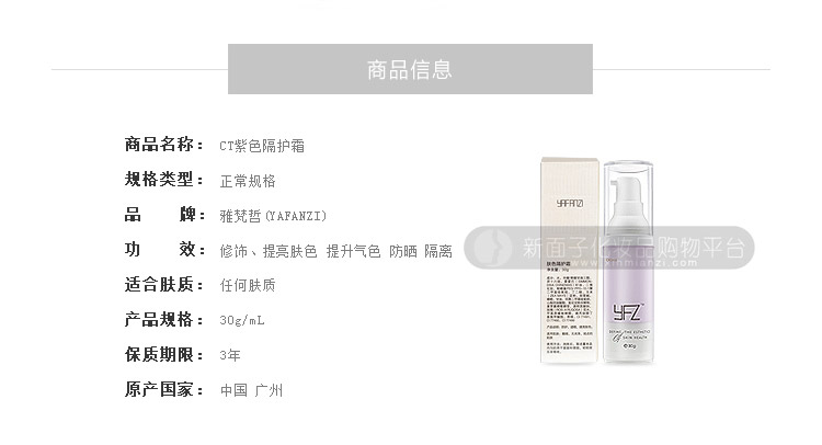雅梵哲(YFZ)CT紫色隔护霜30g